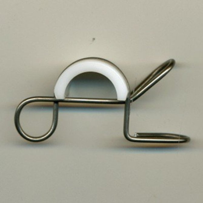 The yarn guide used on the folding wheel. The standard guide will fit the standard and fast flyer. There are other guides which fit the plying head and the very fast flyer.