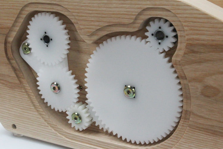 The fusion engine has a gearbox – with real gears! This was chosen as it could offer multiple benefits. Firstly it makes the mechanism for converting the ratios between the main drum and licker-in much more compact, small enough to be embedded into the side of the carder. This consequently will keep your carder cleaner as the gears are hidden away and will not get clogged with fibre and other debris.
