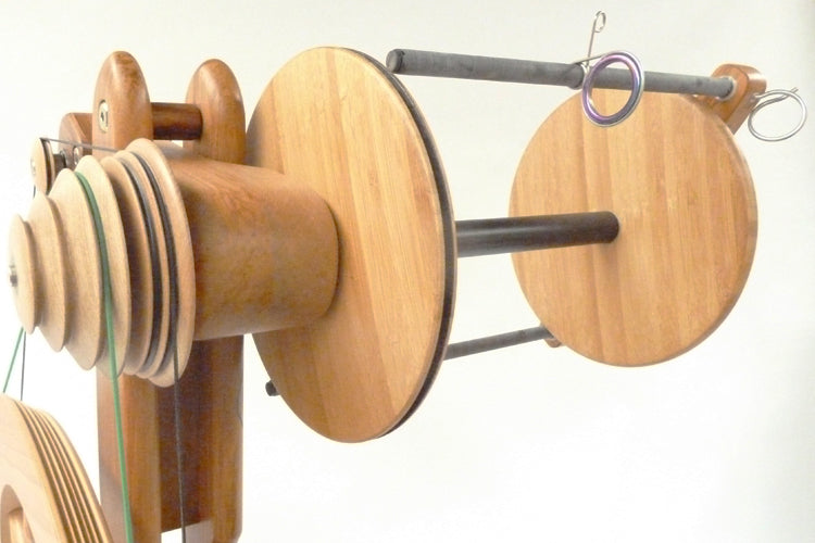 By building the Overdrive as an accessory head, it will turn your existing Majacraft spinning wheel into a production style wheel. The secret sauce of the Overdrive is using the Aura hybrid style double drive to power it. This means that the bobbin is directly driven so it does not suffer from inertial issues when the bobbin is filled. It is light and responsive to spin with right to the finish.