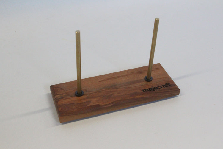 The Majacraft travelling lazy kate is great if you want to spin on the move. It holds two bobbins up to the Jumbo size. The bobbin bars will slide out so the lazy kate will pack down very small. It is included free with a Little Gem or is available individually.